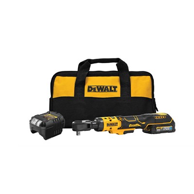 Fasten and remove nuts and bolts using this ATOMIC™ 20V MAX* Brushless Cordless 3/8“ Ratchet. Engineered for performance and durability, the ratchet offers a brushless motor that provides a no-load speed of 250 RPM and variable speed control to help you tackle a variety of applications. The tool's glass-filled nylon housing is designed to help prevent damage from abrasive solvents and chemicals as you work. The ratchet's compact design also helps you reach difficult-to-access fasteners while maintaining a steady, well-lit workflow thanks to its onboard LED light. This kit includes one 20V MAX*XR® Oil-Resistant Compact Battery that is 50% more powerful, 25% more compact, and 15% lighter**.
